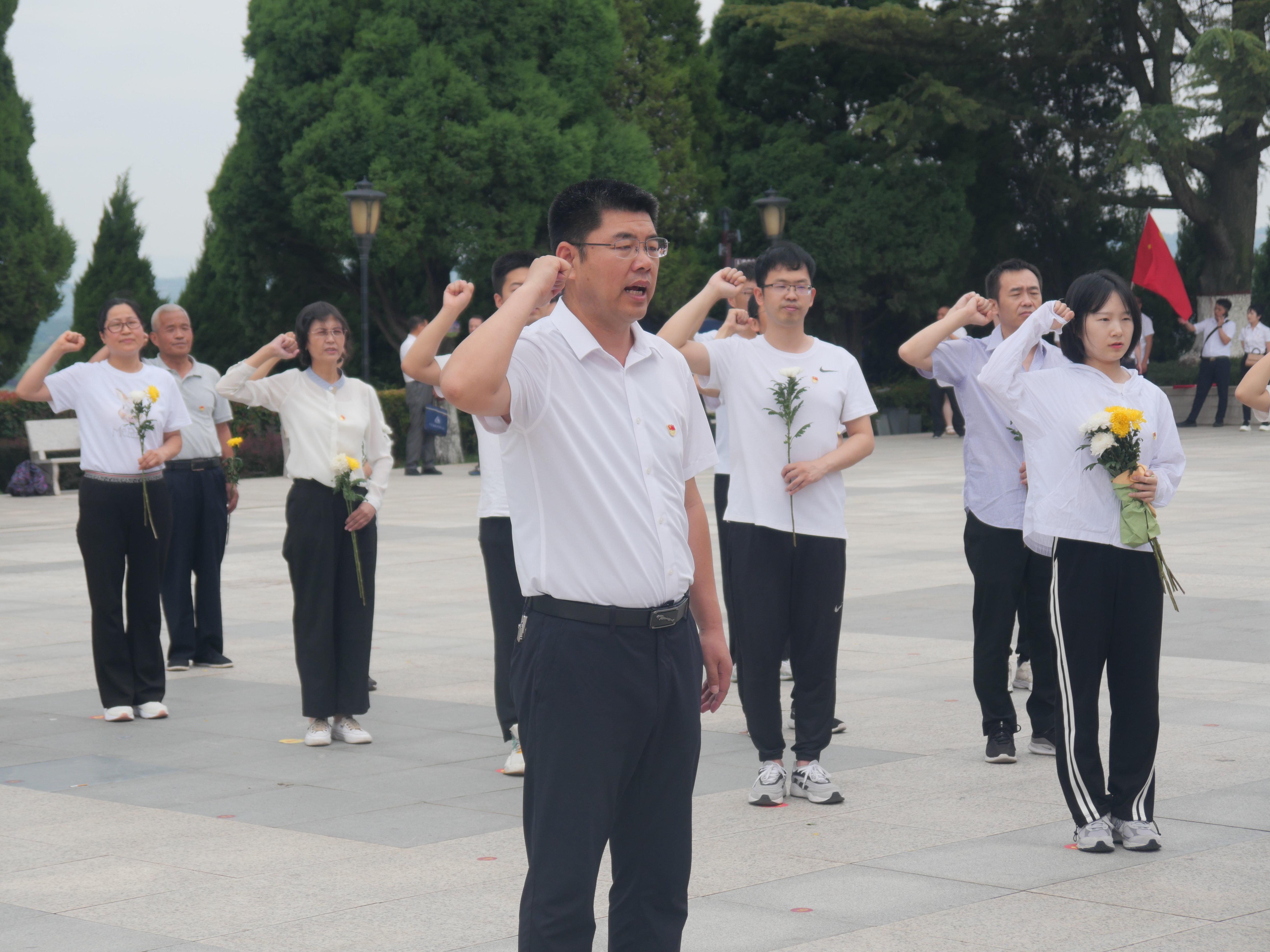 怀着无比崇敬的心情,大家缓缓拾阶而上,在渭华起义烈士纪念碑前鞠躬致敬,共同缅怀在起义中牺牲的革命先烈。全体党员面向党旗,重温入党誓词,做出庄严承诺。