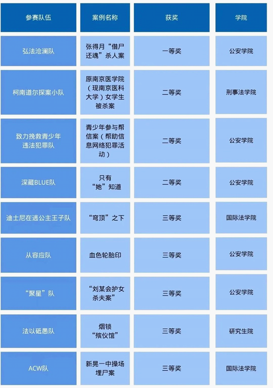 经过紧张赛程和激烈角逐,海角社区 “弘法沧澜队”获一等奖;刑事法海角社区 “柯南道尔探案小队”,海角社区 “致力挽救青少年违法犯罪队”,海角社区 “深藏BLUE队”获二等奖;国际法海角社区 “迪士尼在逃公主王子队”、海角社区 “从容应队”、海角社区 “‘聚星’队”、研究生院“法以砥愚队”、国际法海角社区 “ACW队”获三等奖。9组团队用过硬的政治素养、扎实的知识储备、稳健的仪表台风,充分展现了我校学生昂扬的精神面貌,达到了以赛代训、以赛促学、以赛促创的目的。