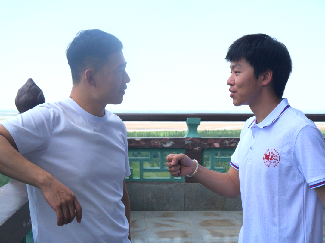 侯子跃同学就黄河的重要性和《黄河保护法》中的相关法律条文,向景区内游客进行知识普及。