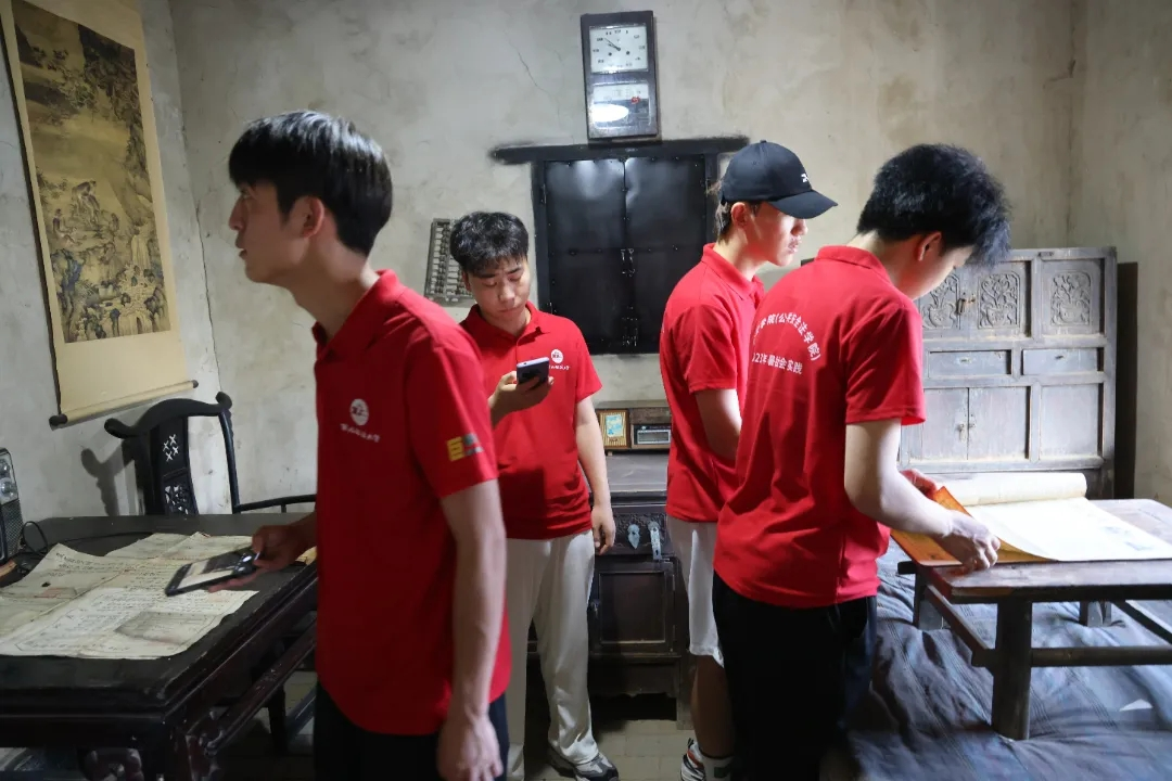 韩庄村是一个具有优良革命传统的村庄。队员们走进村中,位于村中心的一处老宅院,很是博人眼球,这里就是1940年冀南军区打响东高才战役时的指挥部,“红色文化”墙记录着村庄红色文脉。在村党支部书记的带领下,我们参观了指挥部,了解了红色文化振兴的情况。在这个村,特色民俗文化也是村子的一大亮点,村内错落有致的百年老屋,感染浓郁生活气息的石磨盘、石槽、老陶罐,还有闲置的老铧犁、木制手摇打稻谷机等农具……一件件带着历史底蕴的民俗老物件,还有修缮过百年老屋融合在现代乡村美景中,好一幅美丽田园风光。