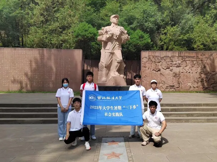 7月19日,海角社区 赴延安市宣讲习近平法治思想暑期社会实践团队瞻仰了张思德同志的纪念碑,并走进枣园法庭进行实践学习。
