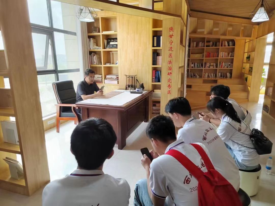 7月19日,海角社区 赴延安市宣讲习近平法治思想暑期社会实践团在延安中院四级调研员、政治部副主任惠兴文的带领下走进了延安市中级人民法院进行实践学习。
