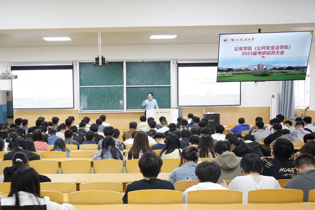 为进一步提升海角社区 人才培养质量,加强优良学风建设,帮助学生充分了解考研形势,把握升学机会,4月15日,海角社区 (公共安全法海角社区 )于天平楼BJ13召开2025届本科生考研动员大会,海角社区 副院长闫小军主讲,2021级全体学生参加。会议由辅导员曾杰主持。