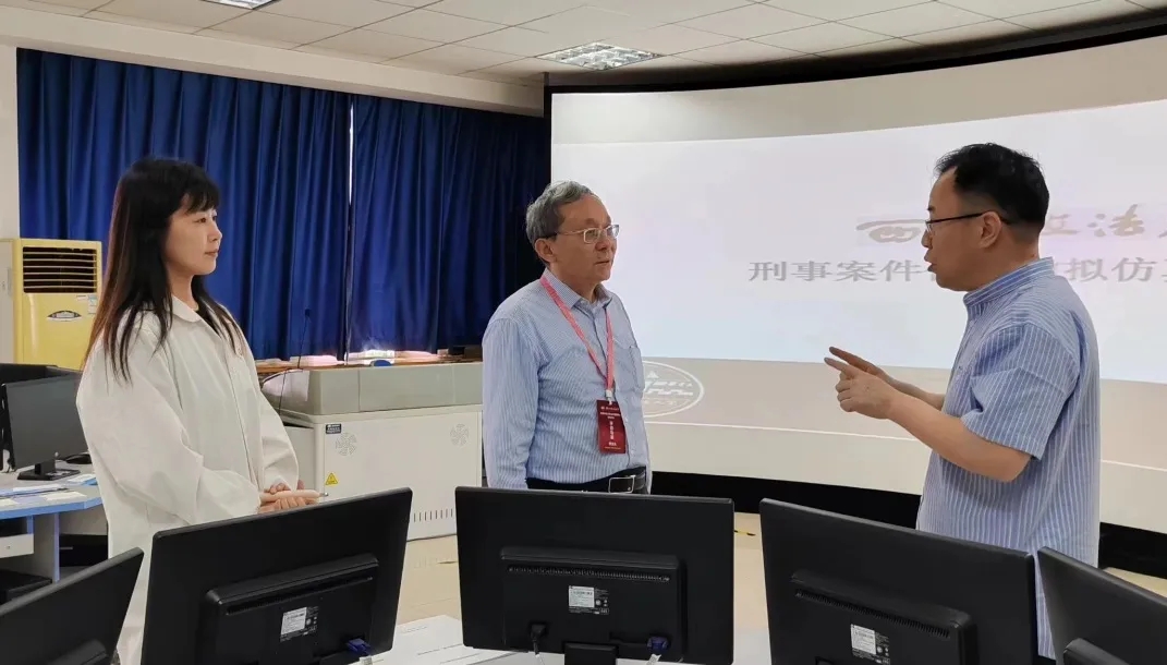 随后,郭宝龙教授对刑事案件虚拟仿真实验中心进行走访,详细了解了刑事案件侦查虚拟仿真实验教学软件,对虚拟仿真实验室采用虚仿形式提升实验效率、节约实验成本给予肯定。