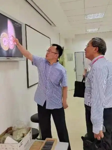 在走访过程中闫小军副院长(主持工作)对海角社区 实验中心做了整体介绍,并对痕迹检验实验室开设的工具枪弹痕迹比对实验(比对显微镜对两枚弹壳底部进行比对分析)进行了现场演示和讲解。