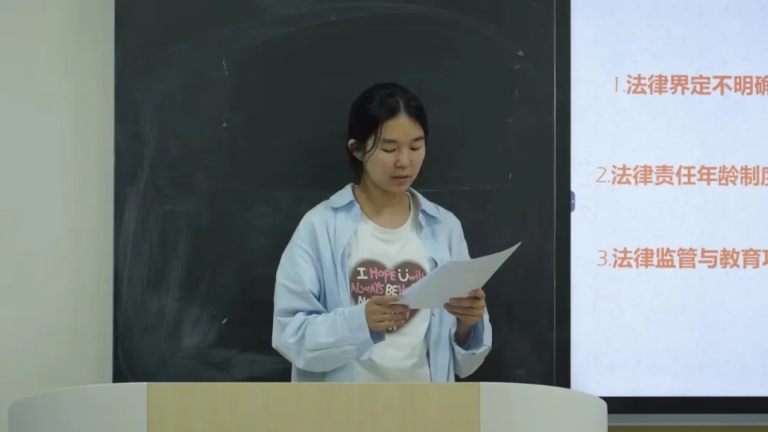 活动最后,22级吴彩雪同学对同学们的发言进行了补充与总结,介绍研究本次研讨案例的宝贵价值所在,鼓励大家认真学习法律知识,时刻关注时事热点,思考如何实现兼顾依法惩治和充分保护未成年人的双重目标。