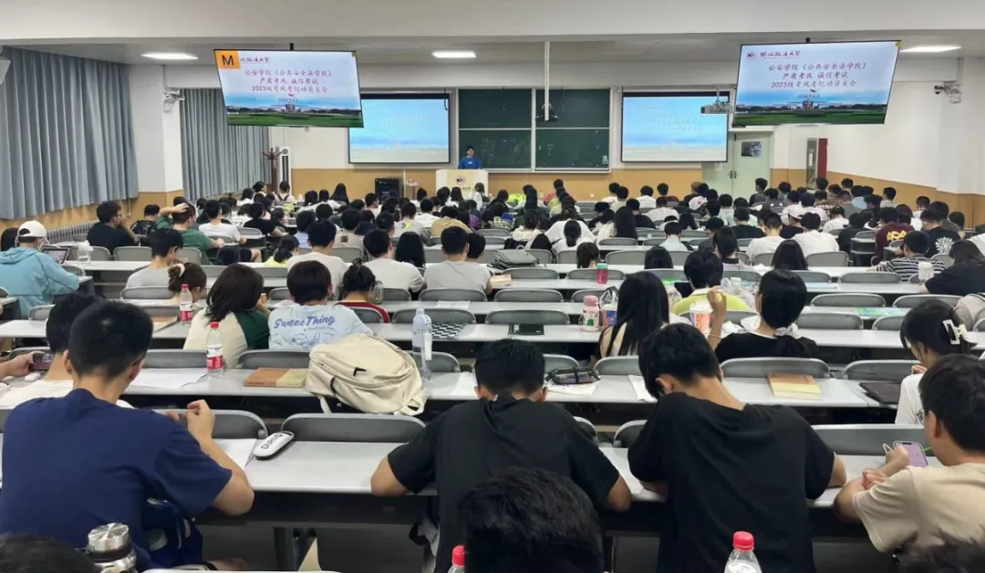 会上,李沛君强调了端正考风考纪的重要性,向学生讲解学校的考试纪律及考试违纪处分规定,号召同学们自觉抵制有损个人与集体形象的行为,做诚信考试的维护者,做校纪校规的遵守者,做学风建设的推动者,充分展现公安学子良好的知识水平和道德水准。同时,李沛君呼吁大家认真复习,积极备考,端正考试态度,以扎实的知识、良好的心态对待考试,并预祝大家都能取得自己满意的成绩。