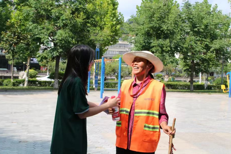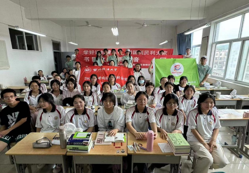 在与老人们结束交流后,团队前往山阳中学,与高中生们进行对话。团队成员向同学们介绍了相关政策,同时指出了进入大学后考取普通话证书的重要性。宣讲结束后,团队成员与同学们进行互动,认真回答了他们的问题。这次活动激发了学生学习普通话的热情,激励他们更加认真努力的学习。