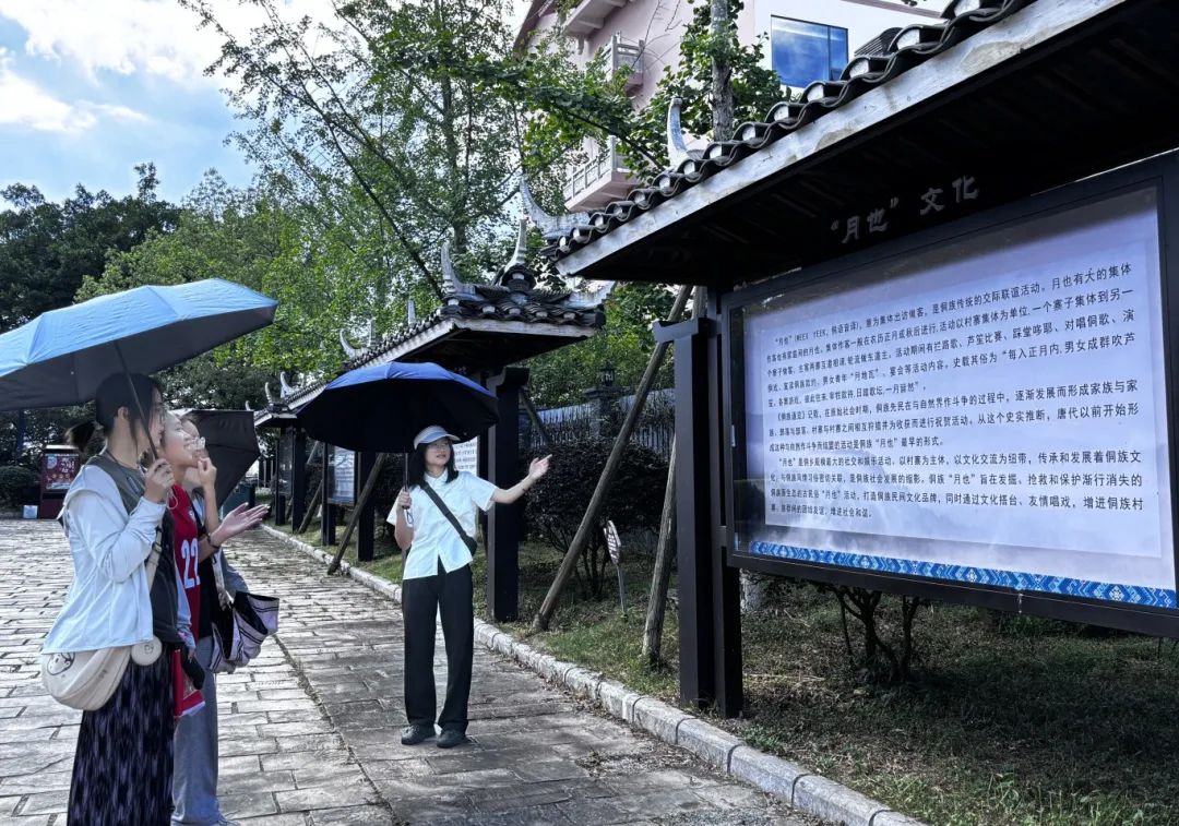 在了解三江鼓楼侗族文化之后,团队走进廊桥社区,在当地侗歌传承人介绍下,成员们了解了富有民族特色的侗族琵琶,随后又观看了古老的侗族歌谣。此次实践调研使成员们切实了解到民族非遗文化传承所面临的问题,同时也深刻认识到传承非遗文化和加强民族团结的重要性。交流活动结束后,成员们积极提出策划推广方案,制作系列宣传片,努力为家乡建设贡献自己的力量。