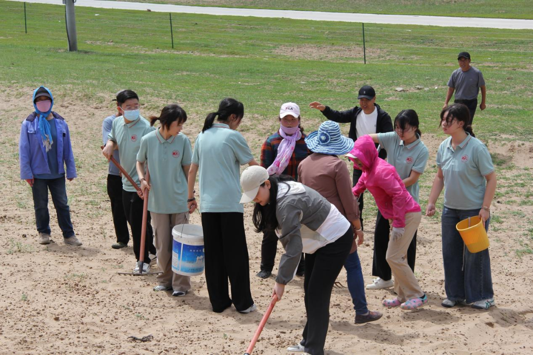 为确保种植效果,青寻“治沙造氧”生态保护暑期实践小组邀请到专业种草技术人员,向组员们传授种植、灌溉、施肥、跟踪检测等必要性、实用性技术。在浑善达克沙地南端,青寻小组成员手持工具,明确分工,将播撒有机肥料、翻挖沙化草地、种植饲草种子和平整土地等各项工作井然有序地开展,为治理沙地,提高植被覆盖率保护生态环境积极主动贡献自己的力量。