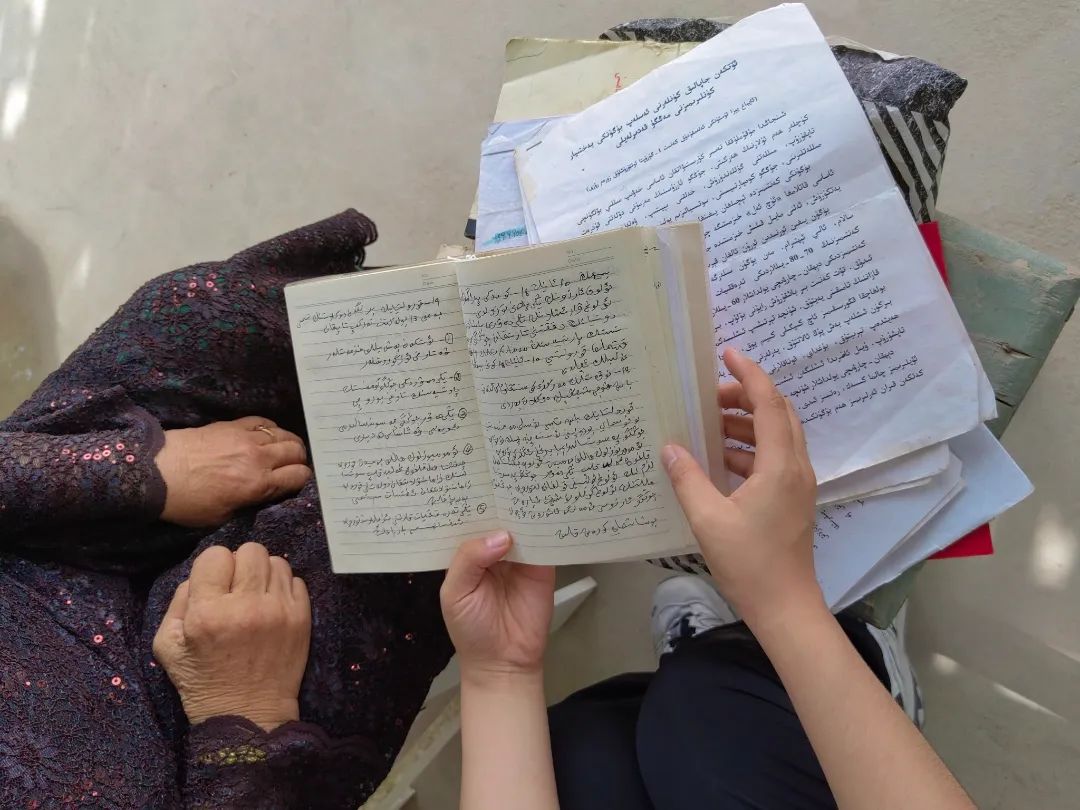 奶奶家四代都是党员,1956年土地改革后,为了支持新疆建设,奶奶的父亲把自己靠土地革命得来的积蓄全部捐给了建设事业,这在当时幼小的奶奶心里埋下了一颗种子。奶奶出身贫苦,只读到小学四年级,但她热爱学习,即使在农田里劳作时也不忘读书写字。直到现在,72岁的奶奶还一直保持着看书的习惯,做的笔记一本又一本。她还写过很多感恩党和国家的散文作品,被村镇打印出来供大家学习。她丈夫和公公也是党员,她们把儿子也培养成了一名共产党员,希望儿子能为国家和人民贡献自己的力量。同时,奶奶很欣慰这几年在党和国家的领导下,老百姓的生活越来越好,越来越幸福,希望后辈们不要忘记这份来之不易的生活,努力学习,长大以后成为对国家和社会有用的人。