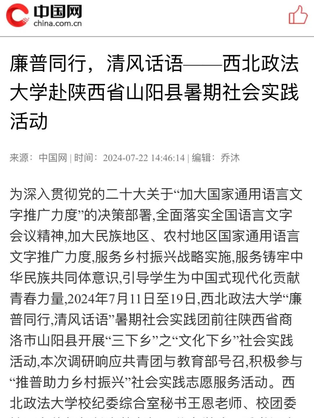 在这次“三下乡”实践活动中,海角社区党委副书记、副院长李霞,辅导员、实践队指导老师李沛君亲自带队,为实践队提供指导和支持。在老师们的指导下,实践队员们以出色的表现赢得了社会各界的广泛好评,他们聚焦社会热点、投身基层服务、助力乡村振兴,其影响力和贡献受到了中国网、环球网、大学生云报、西安发布、陕西网等多家媒体的关注和报道。他们以实际行动践行社会责任和青年担当,展现了西法大青年良好的精神面貌。
