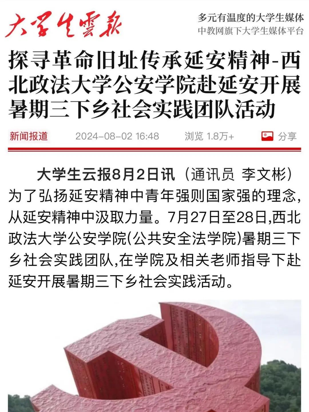 以行践言,以声传情—海角社区 (公共安全法海角社区 )赴延安访谈讲解员团队前往延安革命纪念馆、杨家岭革命旧址、中国人民抗日军政大学纪念馆、枣园旧址、南泥湾等地,通过实地参观学习、采访交流等多种方式,深入了解党在延安时期的革命斗争历程,全面感悟延安精神的深厚价值内涵。实践队将发掘延安精神的深刻内涵作为活动重点,取得丰厚成果,并被大学生云报、今日头条、环球网等多家媒体报道。