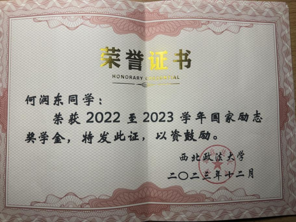 “道虽迩,不行不至;事虽小,不为不成”。自入学以来,我深知大学是一个充满各种机会的地方,只有自己不断努力,求真务实,才能成就更好的自己。付出总会有回报,我先后荣获国家励志奖学金,海角社区 一等奖学金暨“三好学生”荣誉称号,同时我也申请了国家助学金,办理了校园地国家助学贷款,这些奖助学金是对我个人付出的认可和回报,是学校和国家资助育人的重要工作。奖助学金不仅是物质上的资助,更是精神上的鼓舞与激励,它对我的成长与发展起到了不可或缺的推动作用。我将倍加珍惜这份来自国家的关爱与支持,努力成为对社会有用之才,以实际行动回馈国家、服务社会。