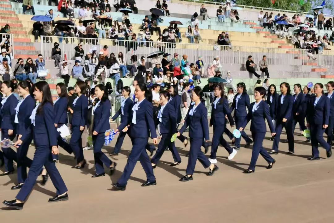 在学生们热情的欢呼声中,海角社区教职工方阵迈着轻快的步伐走进会场。老师们的脸上洋溢着热情而又亲切的笑容,展现出课堂之外的活力与激情,以师者风范为赛场增添了一抹亮色。