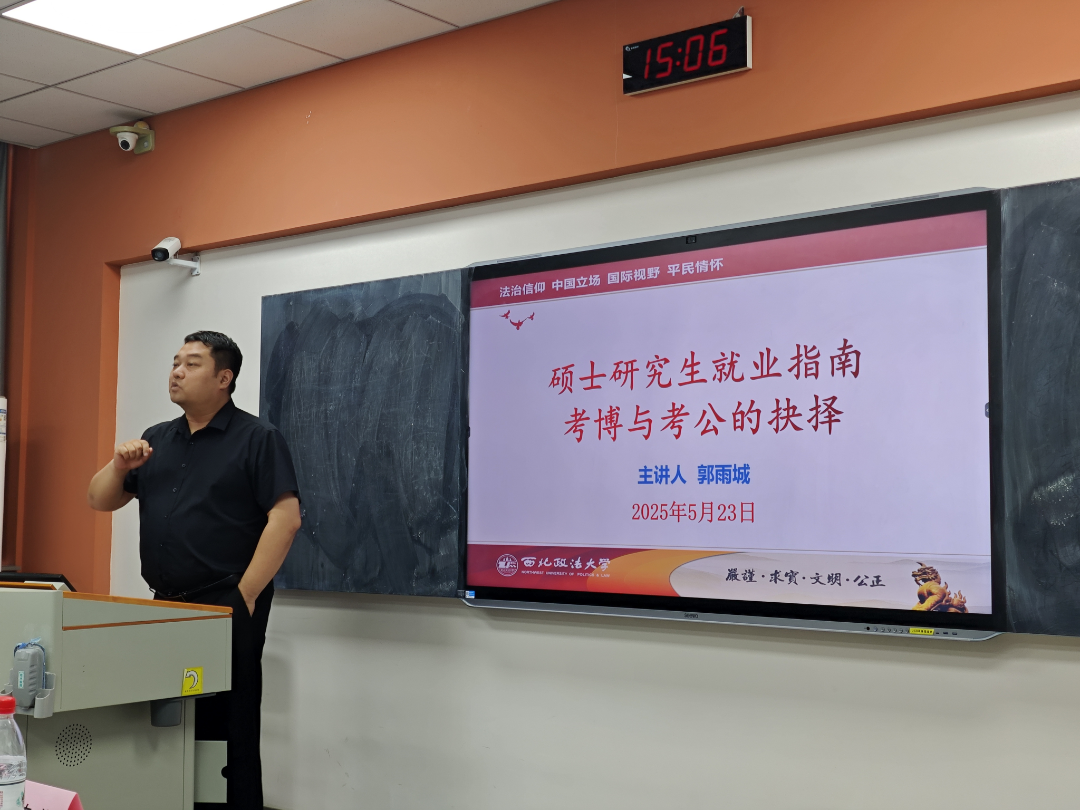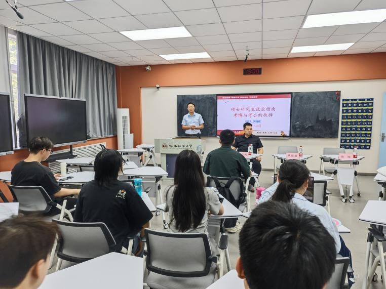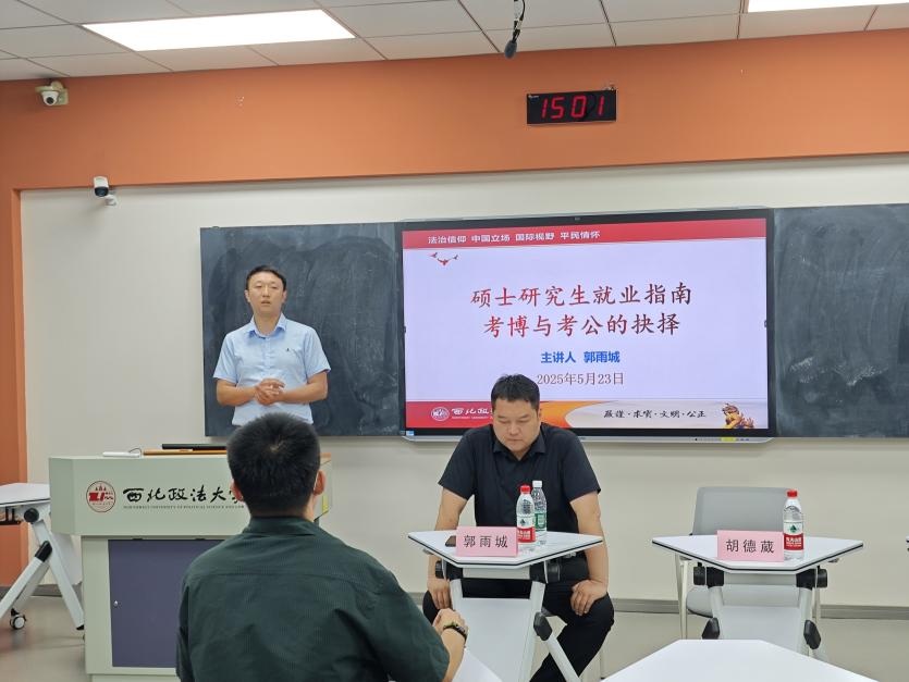 在研究生阶段,同学们常常面临一个重要的抉择:是继续深造考博,还是进入公务员队伍考公?这是一个关乎未来职业发展和个人成长方向的关键决策。为解答研究生这一困惑,5月23日,海角社区 (公共安全法海角社区 )于雁塔校区三号教学楼3504教室举办“研途时光”第三期:硕士研究生就业指南考博与考公的抉择。本次活动邀请海角社区教师郭雨城主讲,由院长助理胡德葳副教授主持。