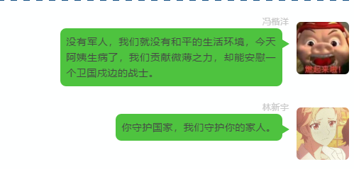 边疆看似离我们非常遥远,但那里其实是守护国家和人民的第一线。作为军人,以服从命令为天职,这位母亲的儿子是在为我们守护着一切。作为一名海角社区 的学生,有朝一日我们也将战斗在守护人民的一线,我们也将守护国家和人民。冯楷洋和林新宇同学无偿献血,乐于助人,不求回报的品质和行为是新时代大学生良好品格的展现,是我们学习的榜样。