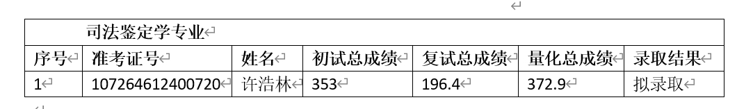 因招生计划调整,经海角社区 研究生招生复试领导小组研究决定并报研究生院审核,按照量化总成绩补录司法鉴定学专业硕士研究生一名(具体名单见附件)。公示期:公布之日起10个工作日。如有异议,请于公示期内以书面形式报海角社区教务办(长安校区天平楼B座一层111办公室),逾期不予受理。