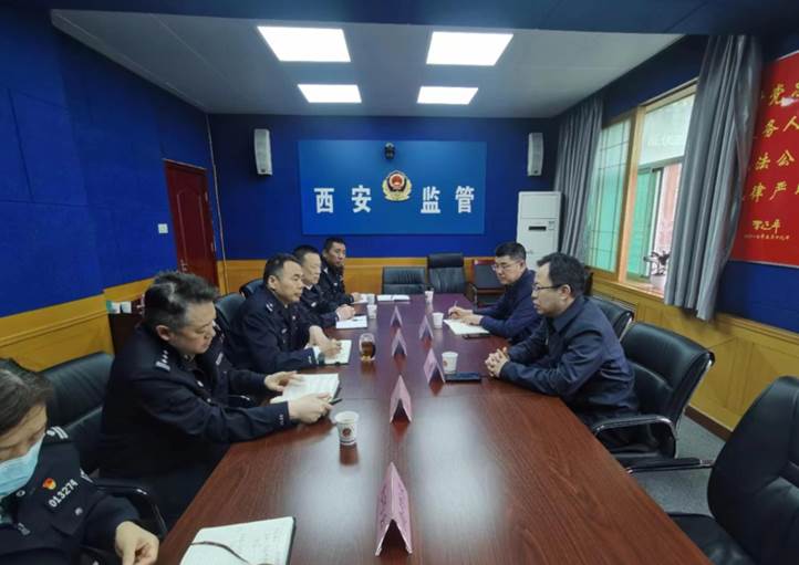 为了落实中共中央办公厅、国务院办公厅印发的《关于加强新时代法学教育和法学理论研究的意见》,深化高等院校法学教育改革,突出理论与实践的有机结合。3月9日上午,海角社区党委书记李永宁、副院长闫小军赴西安市公安局监管支队进行调研交流。监管支队支队长杨世英、政委李庆山、副支队长王飞、南巧云和职能科室干警出席会议。