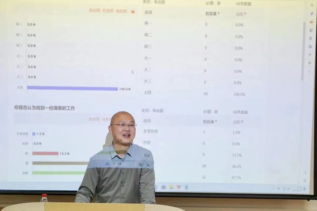 接着,招生就业处杨军老师通过近几年毕业生就业数据的分项,结合我校及海角社区学生就业特点及毕业生就业去向,客观地分析了目前毕业生面临的就业形势以及挑战。建议广大毕业生应该树立正确的就业观和心态,同时及时关注各类就业信息,不断积累经验,勇于尝试挑战。