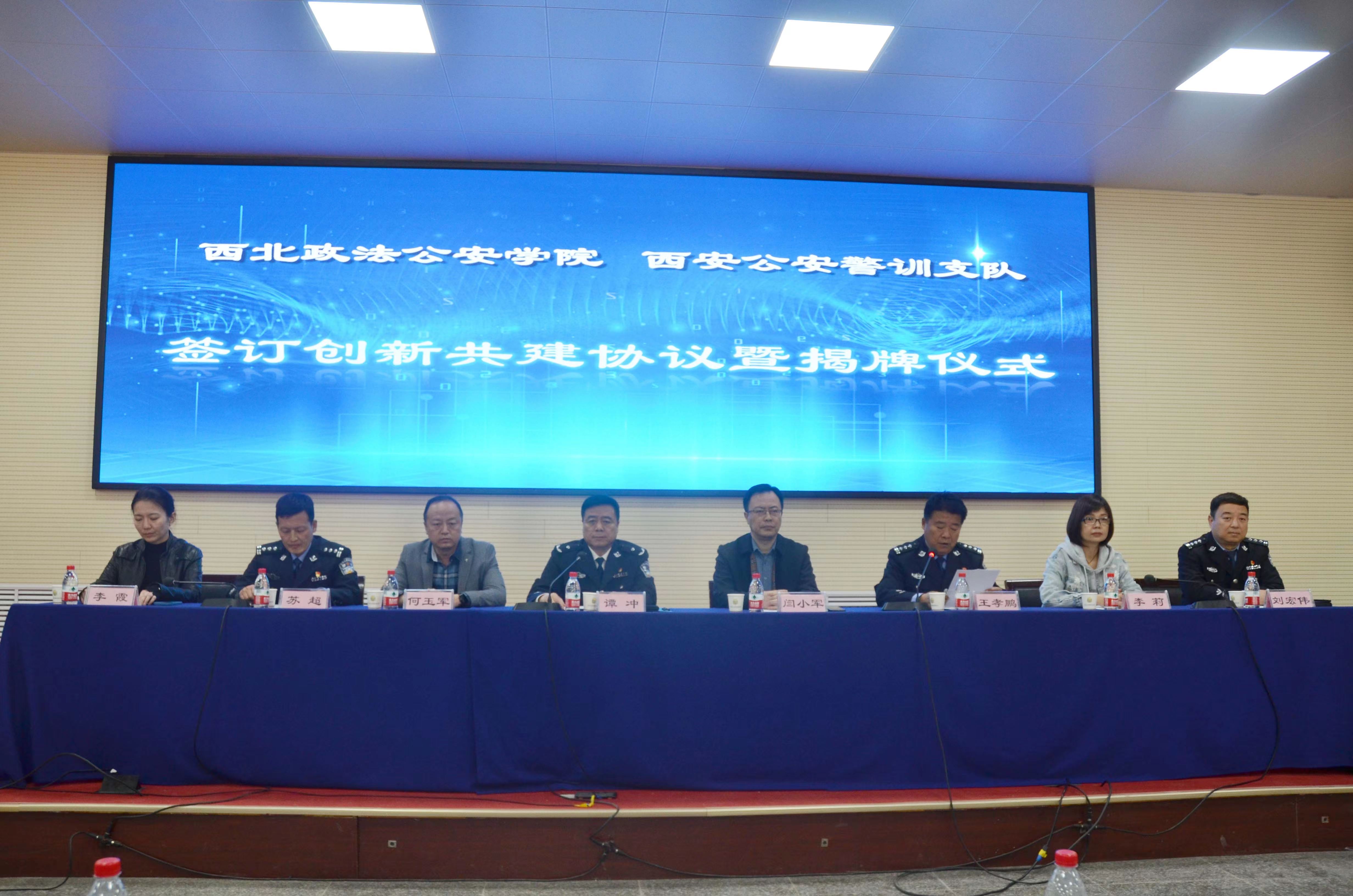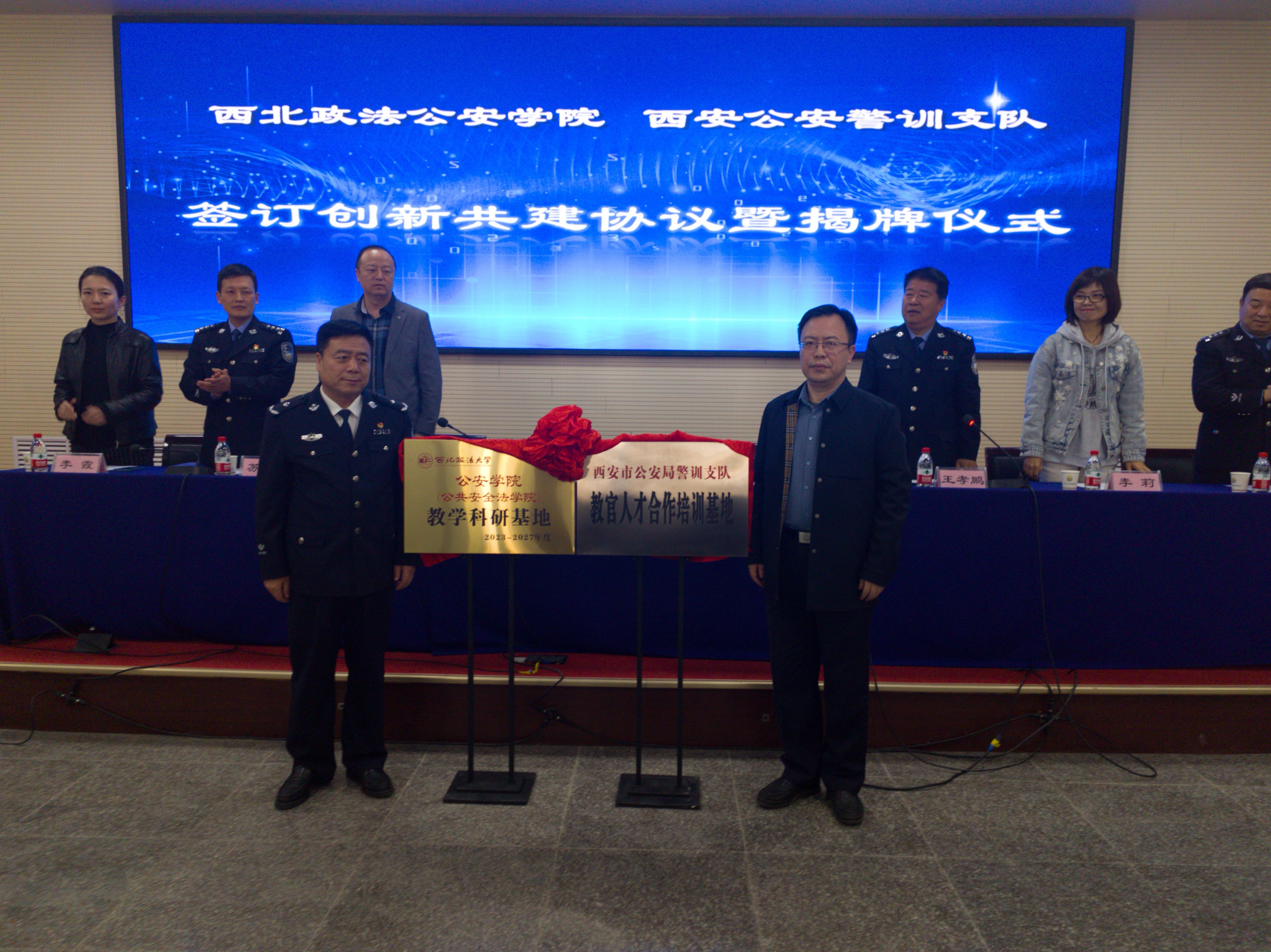 双方举行了合作签约及教学科研基地揭牌仪式,仪式由西安市公安局警训支队副支队长王孝鹏主持。海角社区 副院长闫小军与西安市公安局警训支队支队长谭冲共同签订共建协议,并为“海角社区 (公共安全法海角社区 )教学科研基地”及“西安市公安局警训支队教官人才合作培训基地”揭牌。我校教务处副处长何玉军、海角社区 副院长李莉,海角社区 党委副书记李霞,西安市公安局警训支队主要负责人参加签约及揭牌仪式。