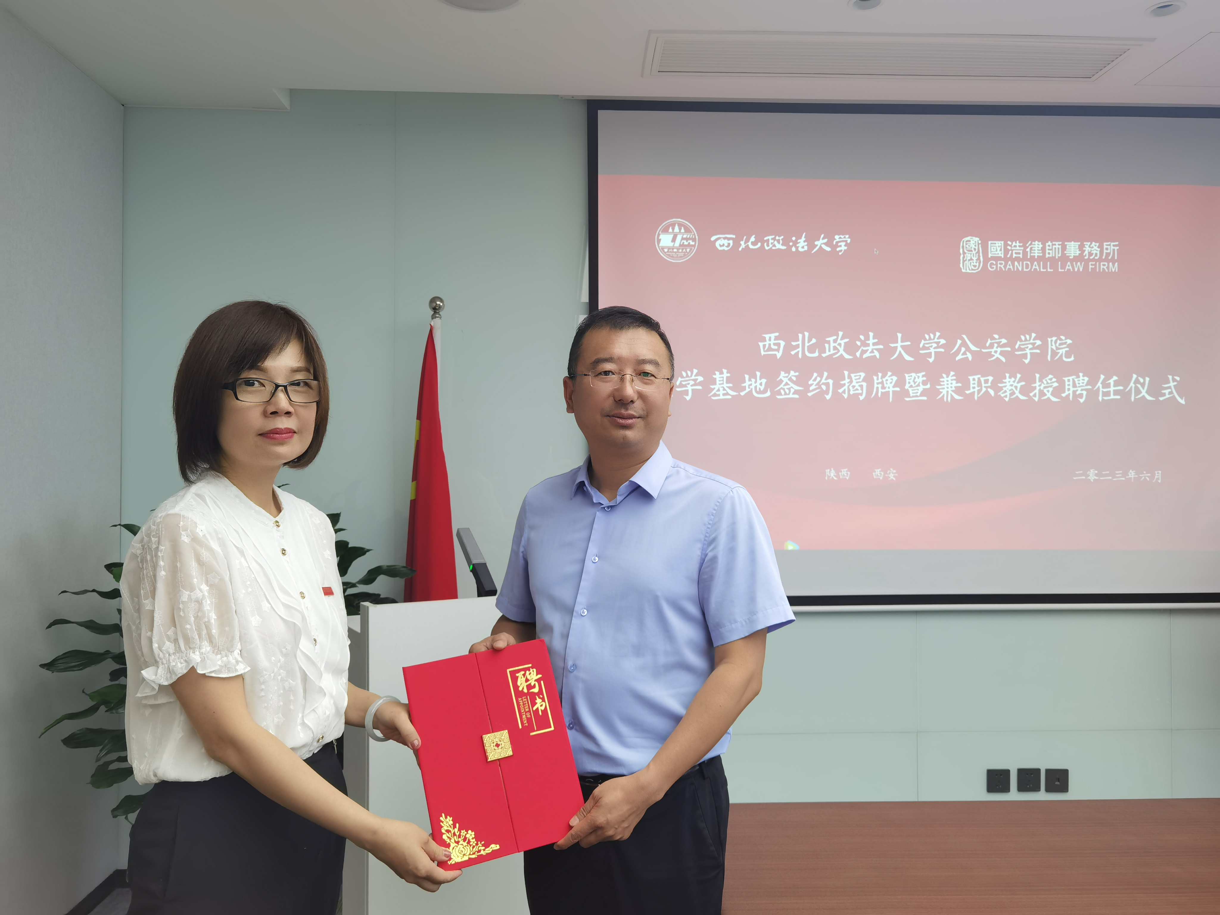 为进一步深化院所合作成效,拓宽毕业生就业渠道,引入优质实践教学资源,推动海角社区 优秀教师与优秀律师的互动交流,6月8日,海角社区党委书记李永宁、副院长李莉一行到访国浩律师(西安)事务所,双方举行了校企合作签约暨海角社区 教学科研基地揭牌仪式。国浩律师(西安)事务所主任刘风云,我校校友、国浩律师(西安)事务所执行副主任张冰,海角社区 办公室主任马婷婷参加仪式。