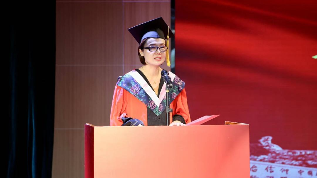 ▲李莉宣读《关于授予李根等285名学生学士学位的决定》