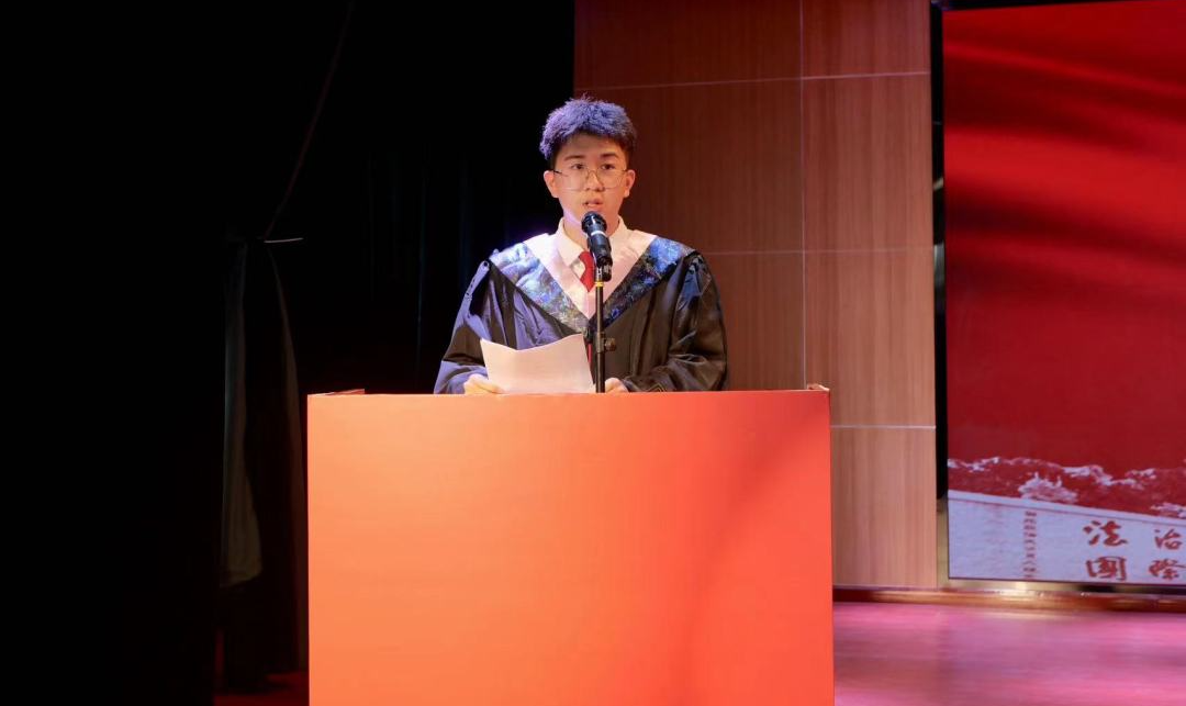 2019级侦查专业孟启元作为毕业生代表发言,他回顾了在西法大求学过程中的难忘经历,并向母校、师长和同学表示了感恩之情。他认为在西法大海角社区 四年的学习与磨砺,让他在脚踏实地中练就了过硬本领。未来,他将继续践行“严谨、求实、文明、公正”的校训,发扬藏蓝精神,肩负责任与使命,让青春在不懈的奋斗中绽放绚丽之花。