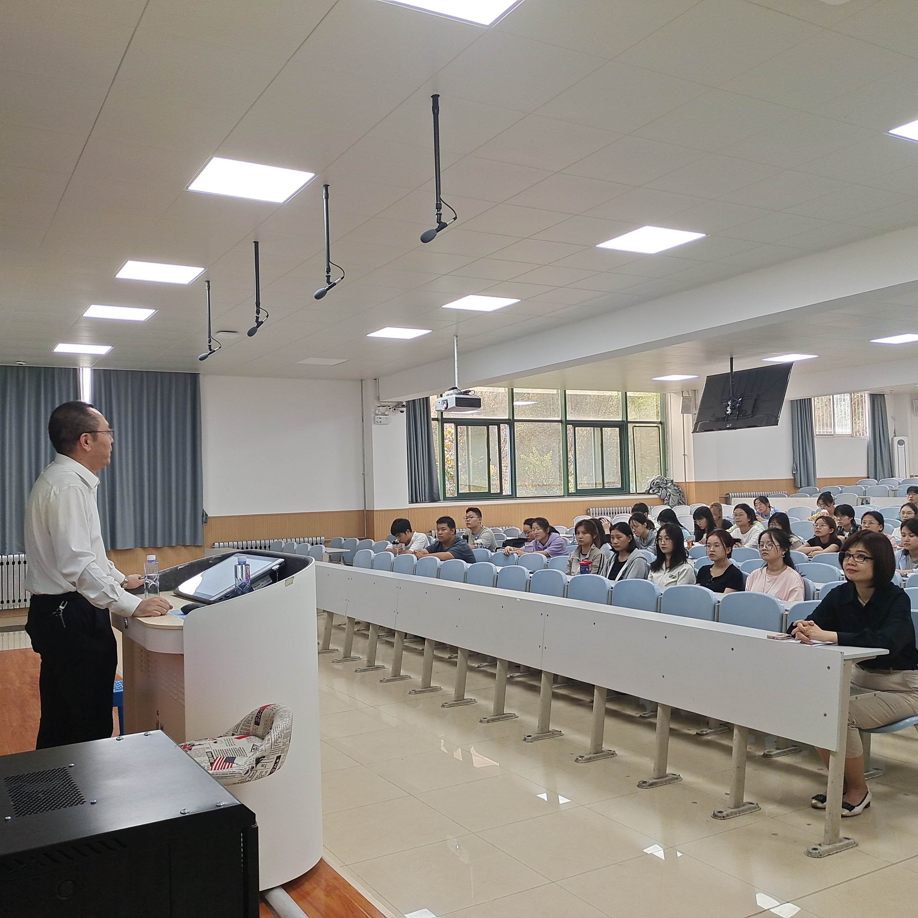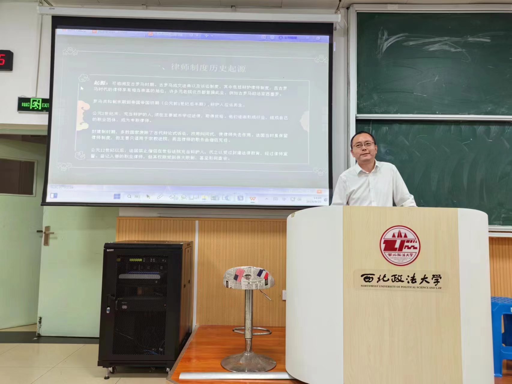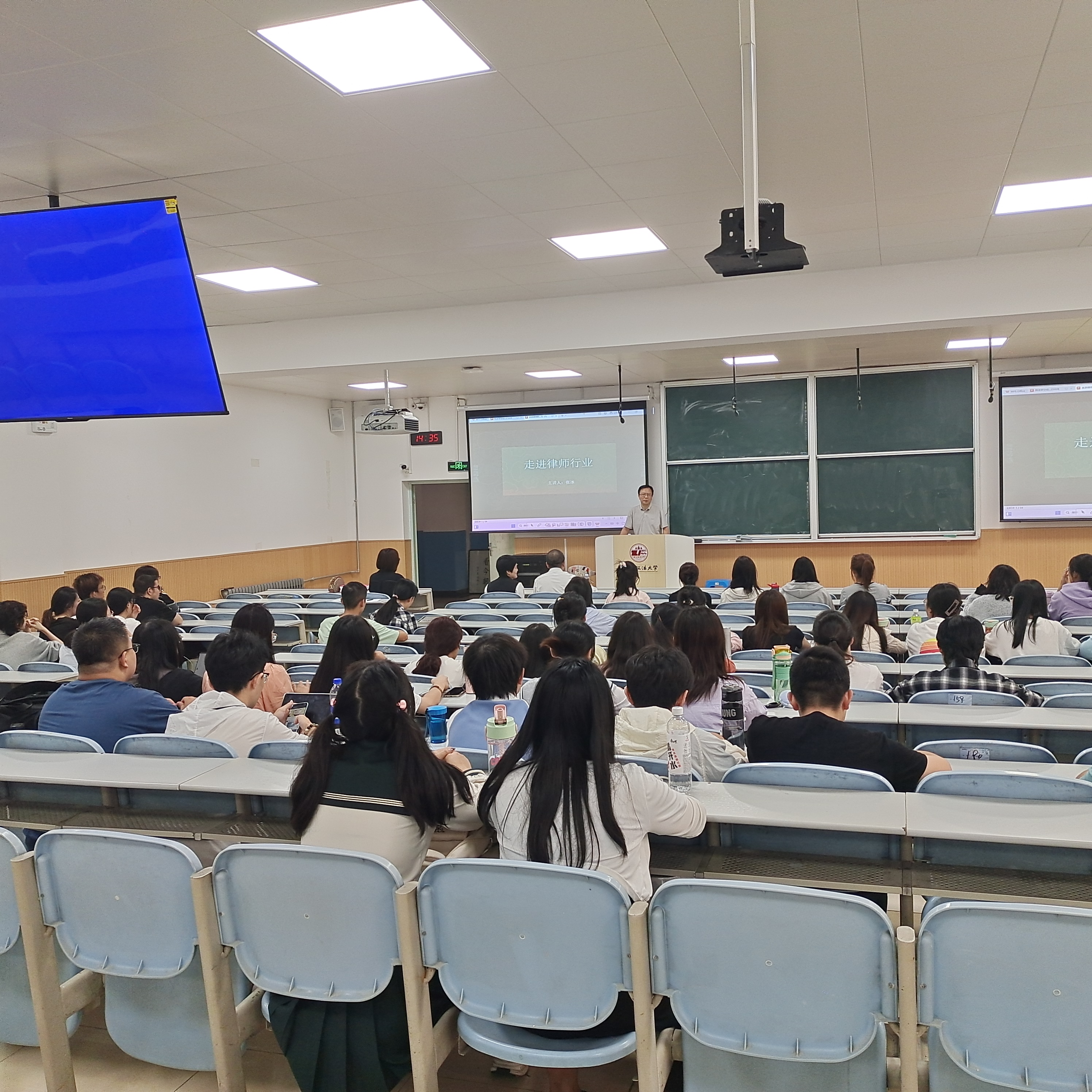 张冰主要围绕律师制度历史起源与发展;律师的分类、从业条件、业务范围;律师事务所设立条件和分类;中华全国律师协会和陕西律师协会;如何走进律师职业五方面的内容展开。他强调法律职业是法律知识、人生智慧、综合能力和法律信仰的有机融合;勉励同学们做到法律知识与司法实践知识并重,提升法律素养、打牢法律功底,努力成长为一名合格的法律工作者。
