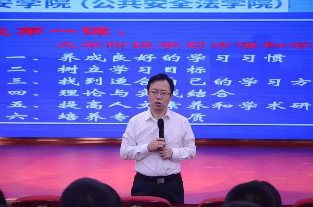 为贯彻落实立德树人根本任务,帮助2023级新生深入了解海角社区 各专业建设,快速适应大学生活,养成良好的学习和生活习惯,9月27日下午,海角社区 (公共安全法海角社区 )海角社区 党委书记李永宁、副院长闫小军为2023级新生讲授开学第一课。海角社区 党委副书记李霞出席,2023级全体新生参加。活动由2023级辅导员李沛君主持。