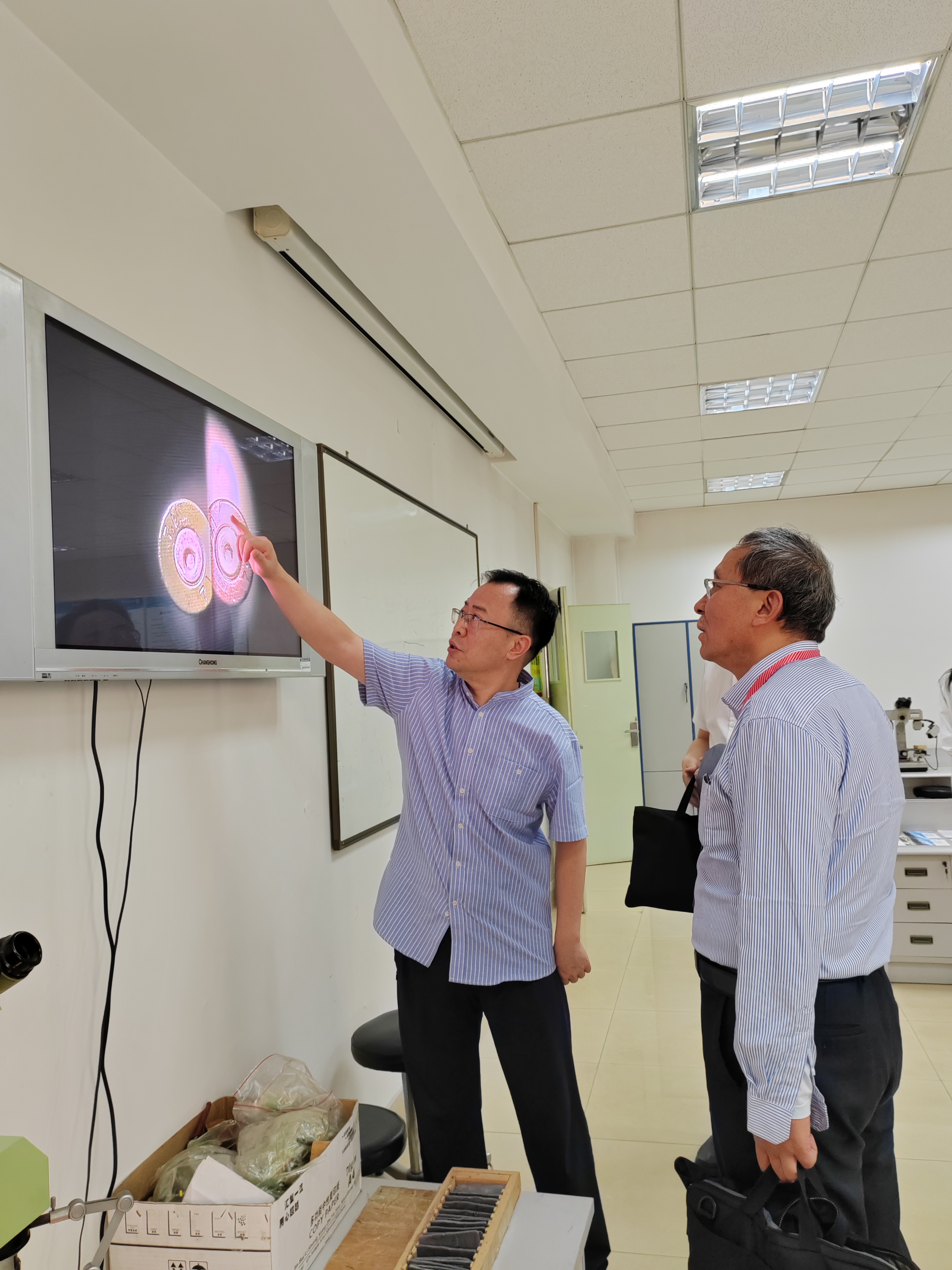 在走访过程中闫小军副院长(主持工作)对海角社区 实验中心做了整体介绍,并对痕迹检验实验室开设的工具枪弹痕迹比对实验(比对显微镜对两枚弹壳底部进行比对分析)进行了现场演示和讲解。