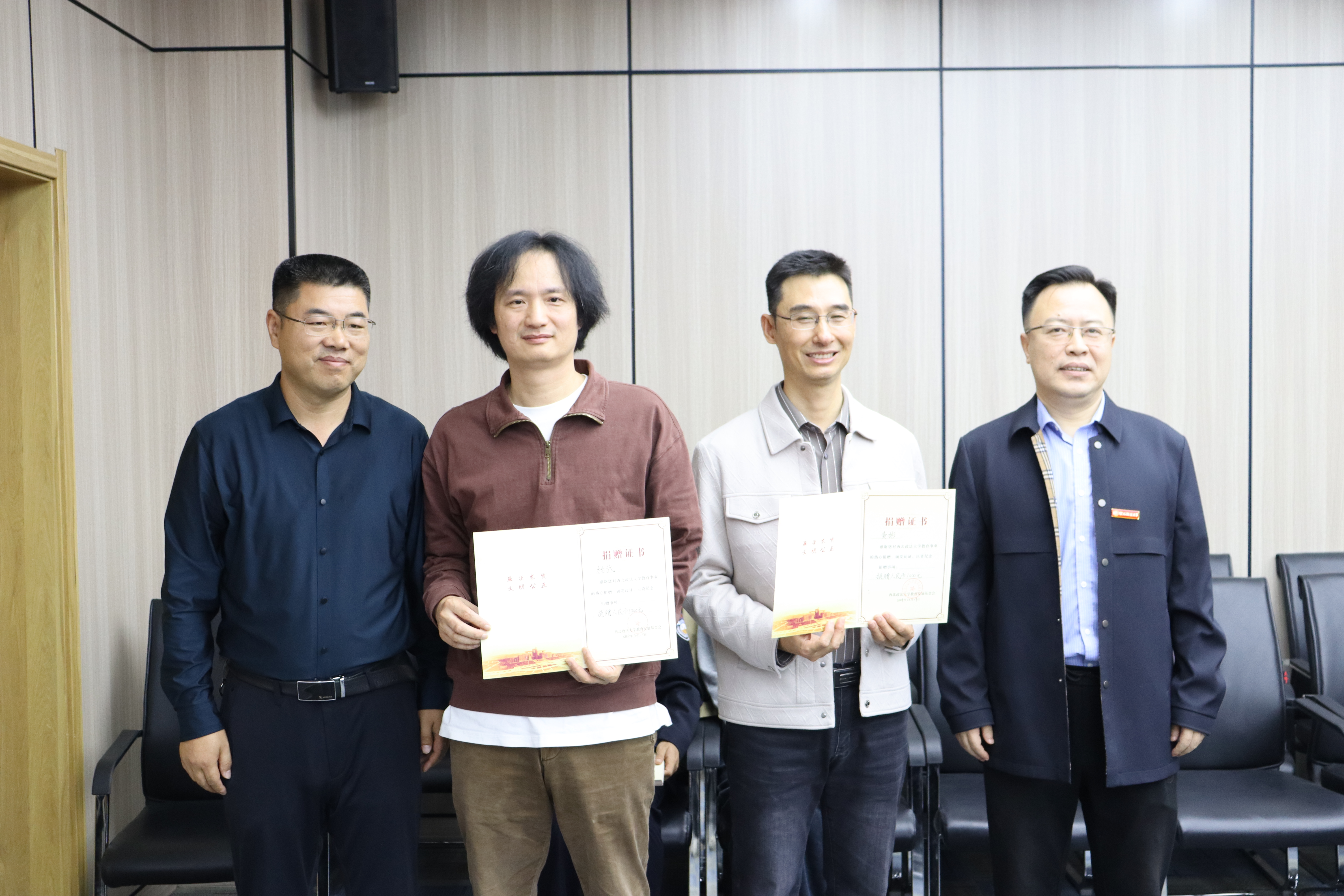 ▲李永宁、闫小军代表海角社区 向黄彬和杨武颁发捐赠证书