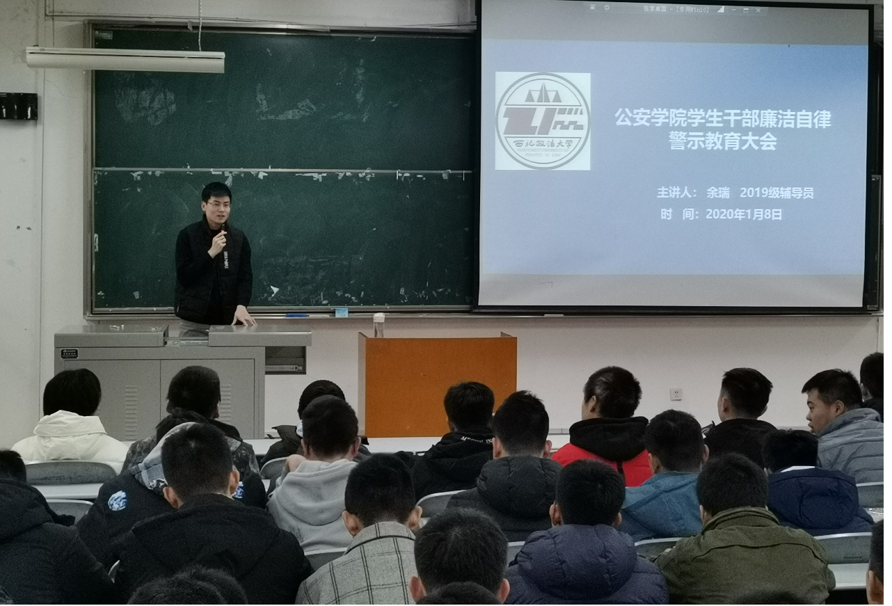 2019级辅导员余瑞老师首先向学生干部传达了学校廉洁教育的相关文件精神,并表示,希望广大学生干部能够增强廉洁自律意识,提高自身的法治道德观念,树立责任意识,监督学生向老师送礼获取的‘特别照顾’等行为,发挥学生骨干力量作用,带头塑造良好健康的师生关系。