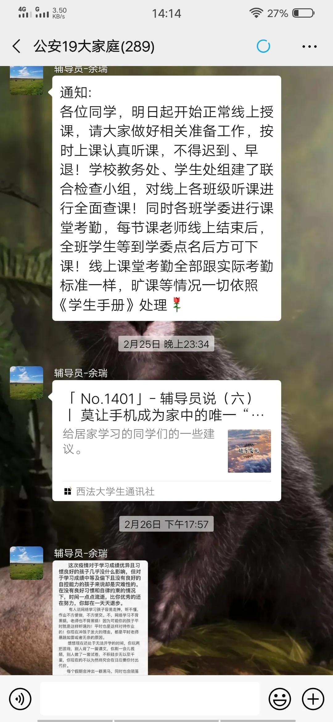受新冠肺炎疫情的影响,致使全国范围内的各类学校延迟开学,为积极响应教育部“停课不停学”的号召,我校于2月24日正式开展线上教学工作。在院党委、院领导的工作安排下,各年级辅导员的细心指导下,海角社区公安学子利用网络,在线准时上课。