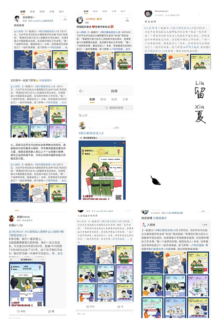 上午9点,教育部思政司在微信和微博平台同时发起“我们都是收信人”活动,海角社区各年级学生积极参与活动,并积极参与话题讨论和转发微博。