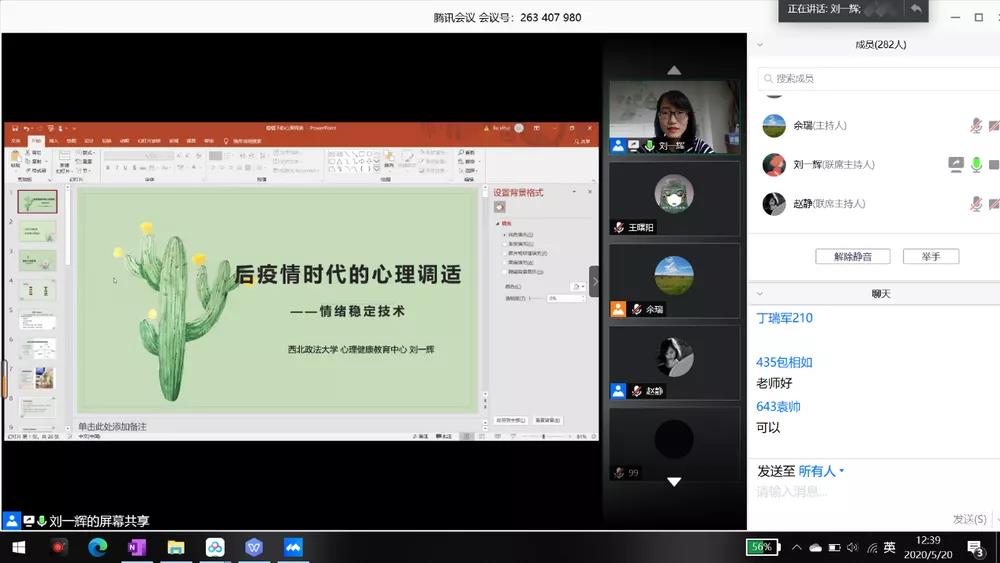 首先,刘一辉老师以“后疫情时期的心理调适”为主题,详细的讲述了心理应激表现对大学生的身心健康的影响,介绍了在疫情常态化的背景下,大学生进行心理调适的技巧和方法。随后,刘老师结合疫情时期的具体事例,为大家介绍了在面对各种压力时如何进行情绪表达和情绪宣泄,并建议大家通过倾诉、运动等方式积极调节心理问题,促进情绪稳定。在讲座上,同学们积极同刘老师互动,向刘老师提出自己所遇到的问题,刘老师耐心地为同学们一一解答,并针对不同的问题提出了相应的解决方案。