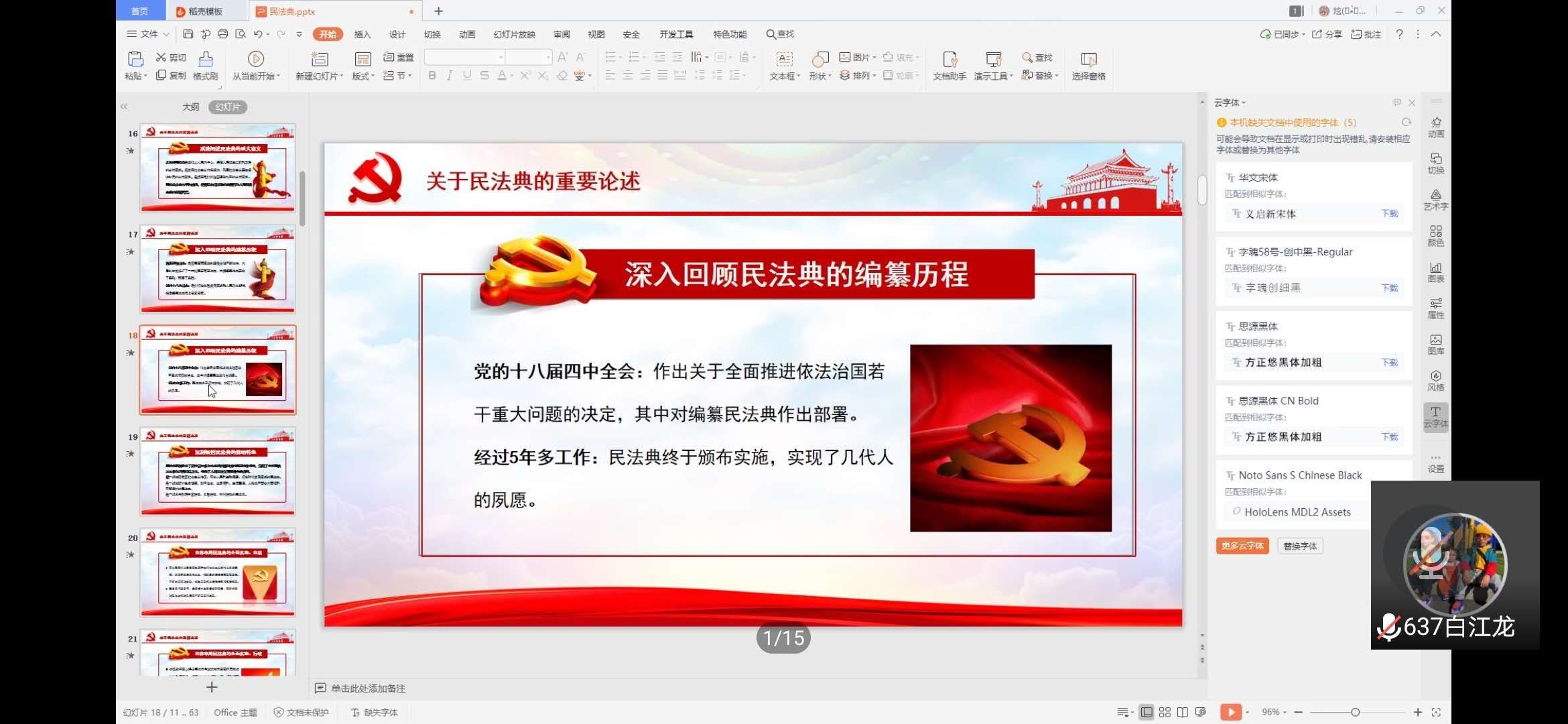 2017级的全体同学们通过观看我校名师组织同学们观看我校名师大讲堂系列视频,同学们共同进行线上学习,班内探讨,发表自己的观点和看法。同时组织同学们阅读我校知名校友孙宪忠教授有关于《民法典》编撰的相关问题,深入了解《民法典》从开始到实施的过程,并且进行讨论,相互学习。同学们利用课余时间,积极配合学习,各抒己见,发表自己的看法,是当代大学生们更加关注民生,也为专业课学习提供了更多的实践内容,充实了同学们的课余学习和生活。