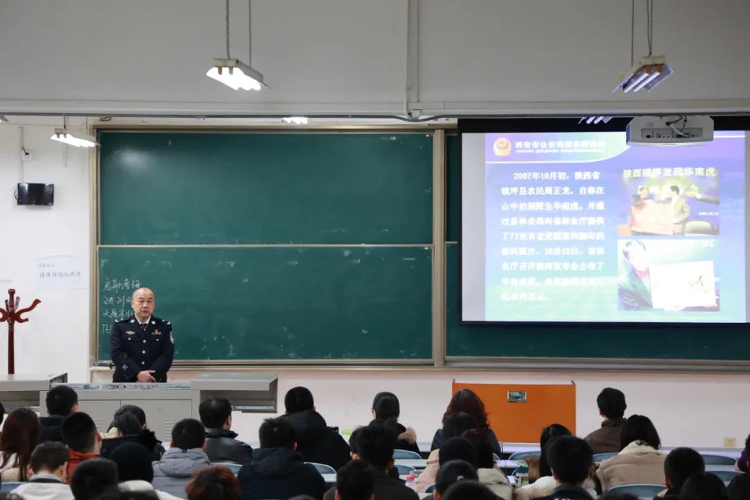 讲座正式开始,赵仲学主任结合自身在“华南虎”案例现场勘测和现场复原的“华南虎”照片的亲身经历进行了现场重建,为讲座现场的老师和同学们详细讲解了案例的侦查背景、侦测过程以及侦测方式。紧接着,赵仲学主任通过引出未央区“6.18”强奸杀人案中侦查人员使用的电子数据信息提取技术,突出表现了作为刑侦破案人员拥有广泛基础知识,掌握现代原数据信息技术能力的重要性。赵仲学主任以通俗易懂的讲述方式营造了讲座现场轻松愉快的案例分析氛围,使得讲座现场的老师和同学们在潜移默化中拓宽了自己的视野,丰富了自身的理论知识。