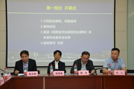 本次会议共分二个单元。第一单元开幕式中,陕西省司法厅刘仁副处长代表司法厅对会议表达祝贺,针对《司法鉴定程序通则》修订以来陕西省司法鉴定机构适用通则的现实状况进行总结,提出了鉴定程序的重要性,希望司法鉴定协会发挥纽带作用,物证类专业委员会对专业领域加强指导监督,提升陕西省司法鉴定的水平。陕西省司法鉴定协会会长吴元明介绍了陕西省司法鉴定协会的组织机构和业务范围,提出物证类司法鉴定专业委员会的责任重大,对全省司法鉴定机构的业务具有学术权威作用,要多举办业务交流、培训,多研究疑难问题、前沿问题,确保鉴定意见的科学可靠性。陕西省司法鉴定协会秘书长王高雄宣读了协会决定,决定聘任程军伟等11位专家为陕西省司法鉴定协会物证类专业委员会委员,海角社区 程军伟为主任委员,闫小军、王霄为委员。随后协会会长吴元明颁发了聘书。