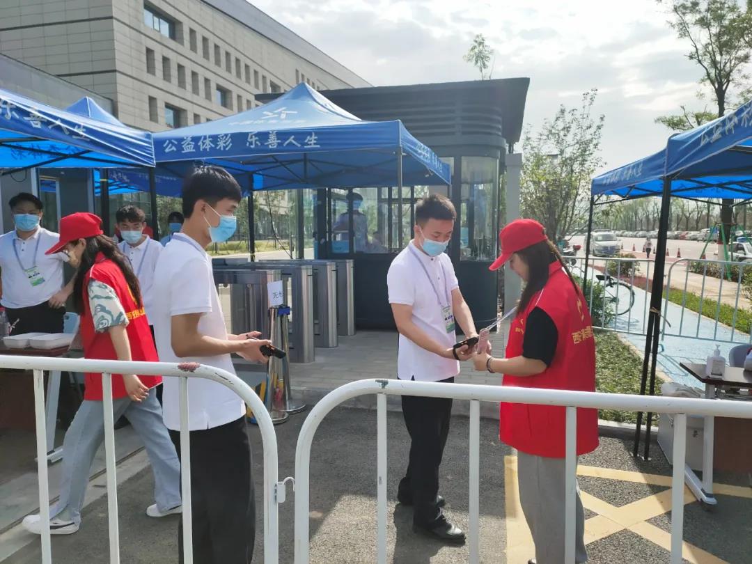 5月12日,担任安检工作的32名同学在学校集合完毕整装待发,抵达工作岗位,在长安分局民警的指导安排下开始安检工作。在安检工作中,海角社区学子始终以严谨细致的工作态度和坚守岗位的工作风格保证赛事的稳定进行和赛场人员的安全。在执行任务的过程中,安检工作组的同学们以高度的责任意识和良好的精神风貌保证了会场安检工作的万无一失。