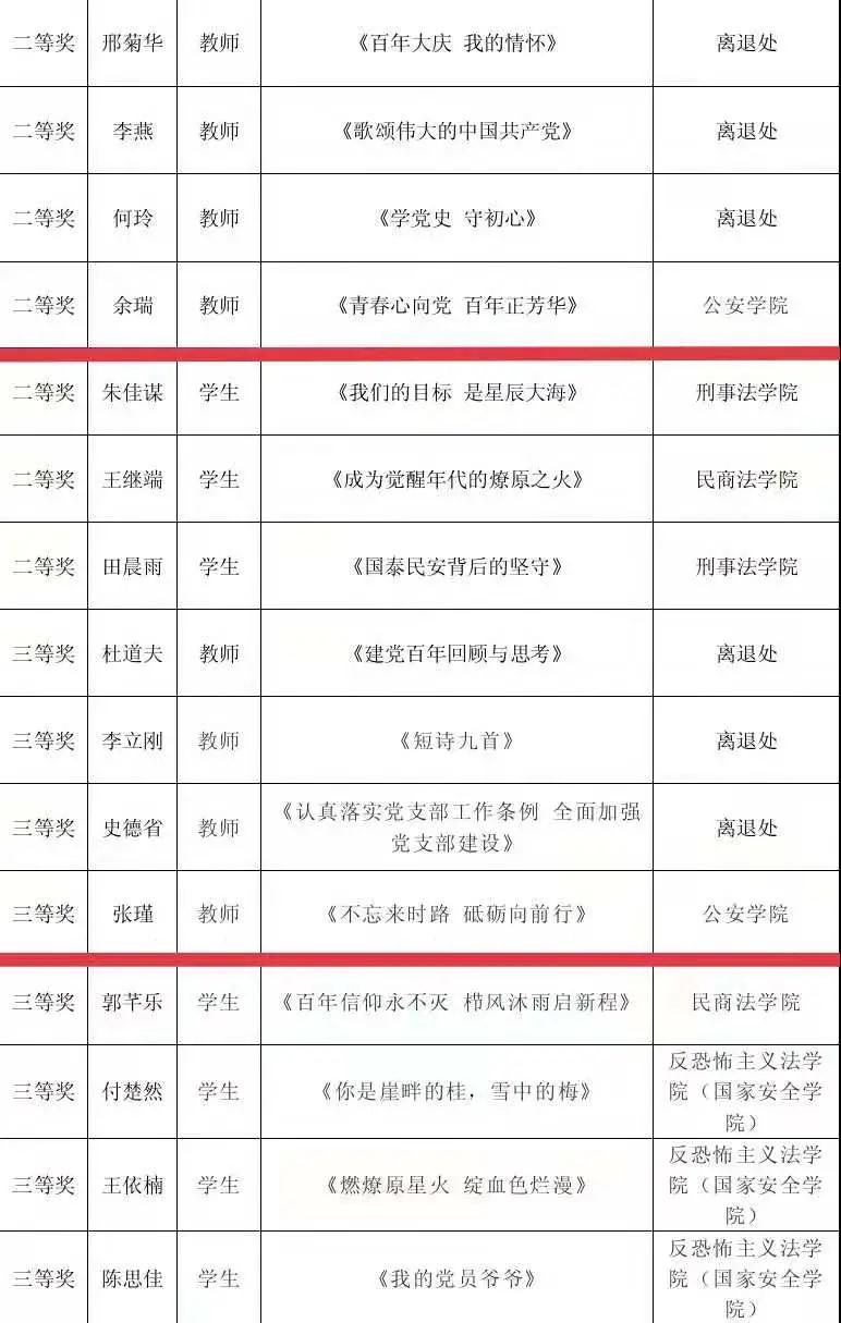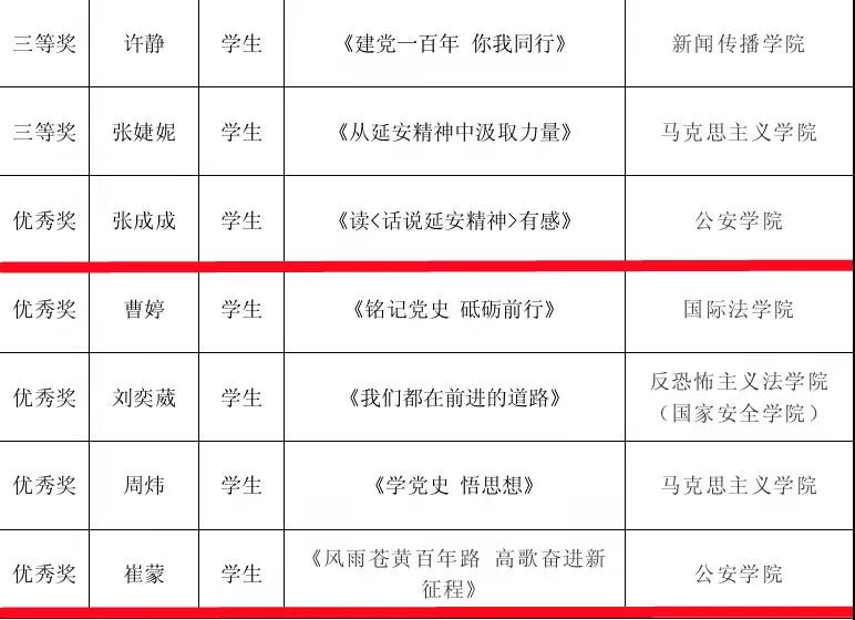 此次“庆祝中国共产党成立100周年”征文比赛征集从4月15日至5月17日截止,在一个月时间内共收到参赛作品176篇。其中,海角社区五名师生征文获奖:余瑞老师的«青春心向党,百年正芳华»荣获二等奖;张瑾老师的«不忘来时路,砥砺向前行»荣获三等奖;牛炉基同学的«记人民文学家柳青先生»荣获优秀奖,张成成同学的《读<话说延安精神>有感》荣获优秀奖,崔蒙同学的《风雨苍黄百年路,高歌奋进新征程》荣获优秀奖。海角社区师生的征文作品中无不体现习近平新时代中国特色社会主义思想,深切厚植爱国、爱党、爱校情怀,极大突显出海角社区师生的理论学习深度、思想认识高度,向党的百年华诞献礼!