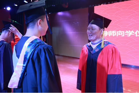 接着,同学们一组一组,英姿飒爽地走上讲台,导师们把同学们学位帽上的流苏拨向左侧。从这一刻起,同学们获得了人生第一个学位。学位是能力,更是担当;学位是荣誉,更是期望。