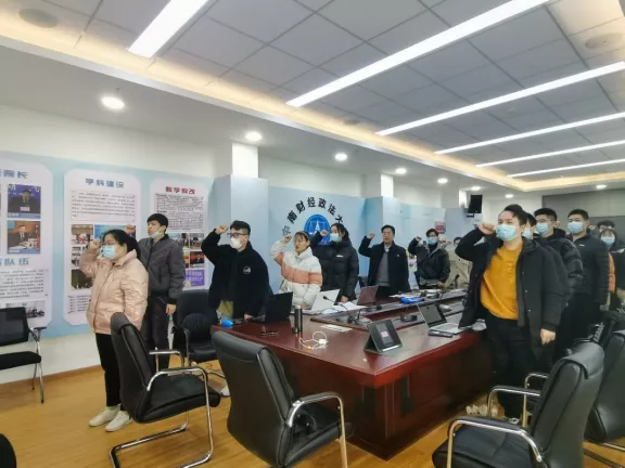 第二项,中南财经政法大学刑事司法海角社区 研究生办公室主任兼研究生辅导员彭倩老师带领全体参与人员重温入党誓词。