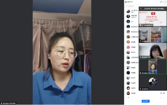 第二位发言人是西北政法学海角社区 警事法学硕士生许露曦,其发言的主题为元宇宙视角下大学生网络不当行为的规制。她分别阐述了元宇宙对于刑事司法的影响和如何对大学生的网络不当行为进行规制两个问题。她对于元宇宙的提出、产生、现实表现等情况分别做了较为详细的介绍。她认为,对于元宇宙要谨慎对待,不应该过度恐惧也不应该过度依赖。第二部分发言则是对于如何规制疫情期间大学生的网络不当行为,对于网络违法行为,犯罪行为道德失范行为等行为进行分析,并分析得出了受不良媒体影响、网络行为的主动性和网络行为具有一定的掩饰性这样的原因,提出了从教育维度、制度维度等方面提出可行性的建议。