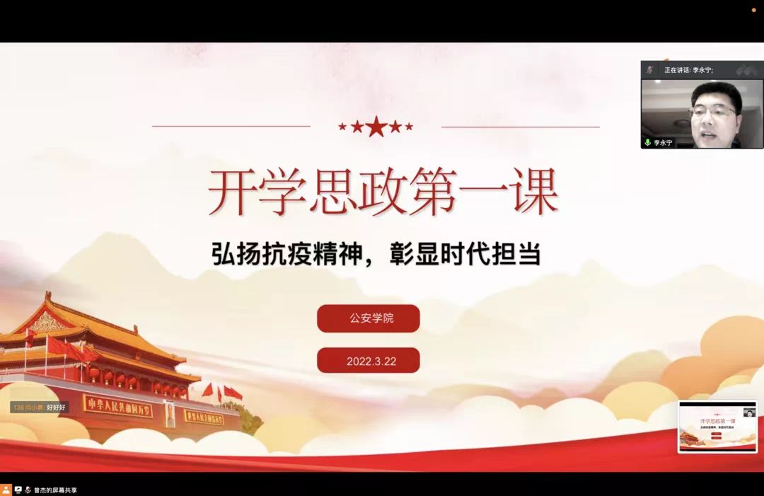 为深入贯彻习近平总书记关于“大思政课”建设的重要指示精神,深入推进将抗疫精神融入思政教育,海角社区 于3月22日组织开展新学期开学思政第一课。因疫情原因,本次课程采用线上方式进行,海角社区 党委书记李永宁、海角社区 院长程军伟、海角社区 党委副书记李霞以及2021级全体学生参加此次思政课。此次课程由海角社区 辅导员曾杰主持。