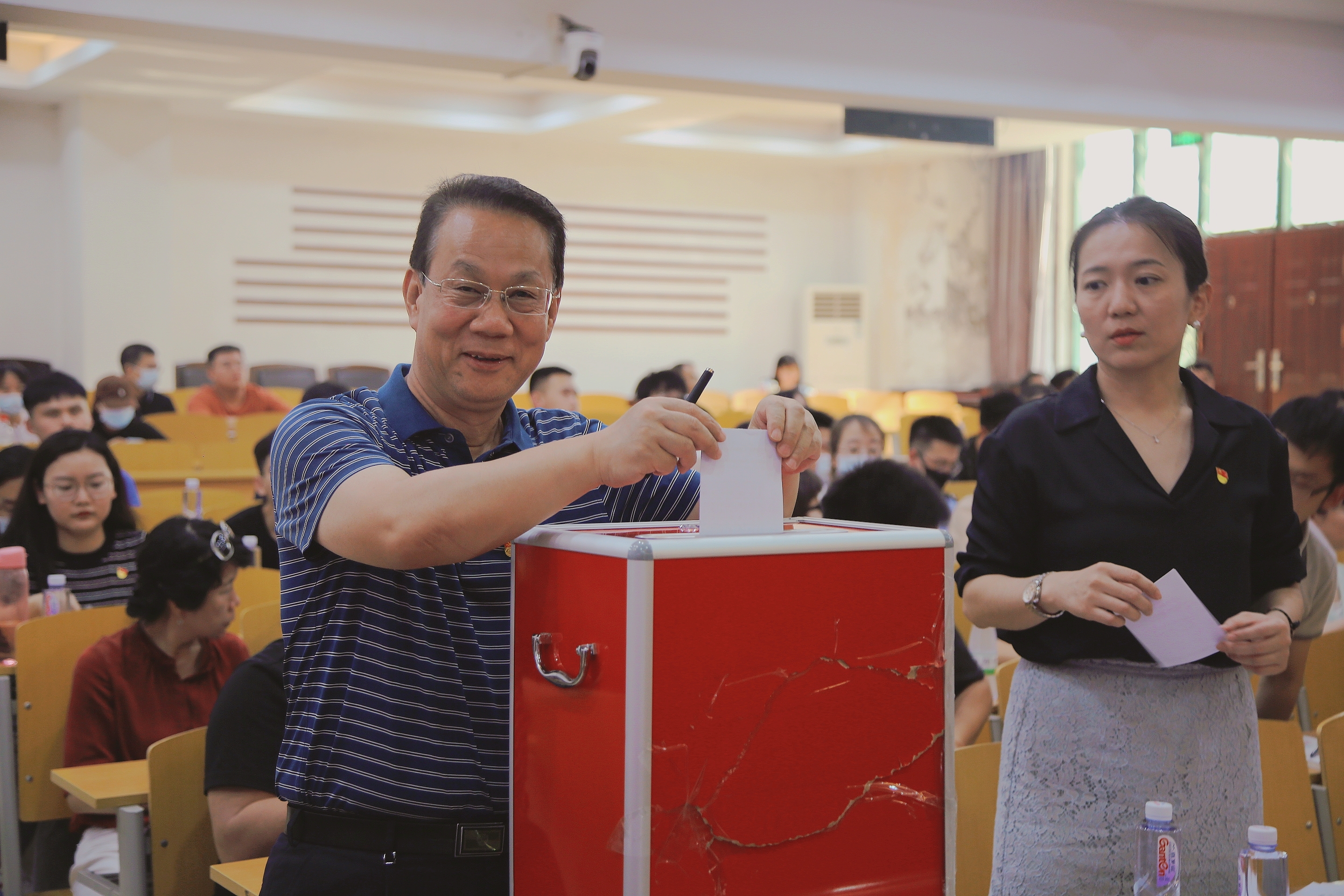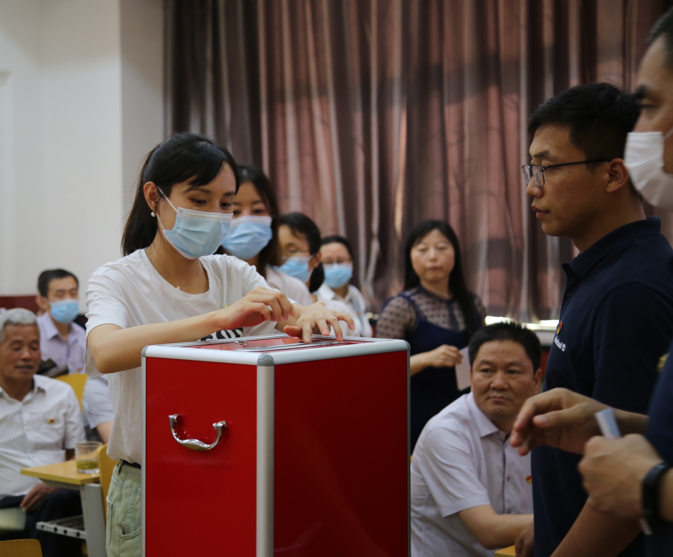 大会第二阶段,在总监票人刘妍良的主持下,选举正式开始。在清点到会人数、介绍代表候选人预备人选简历、发放选票等环节之后,全体正式党员郑重填写选票、有序投票,最终差额选举产生海角社区 出席学校第四次党代会代表9名。