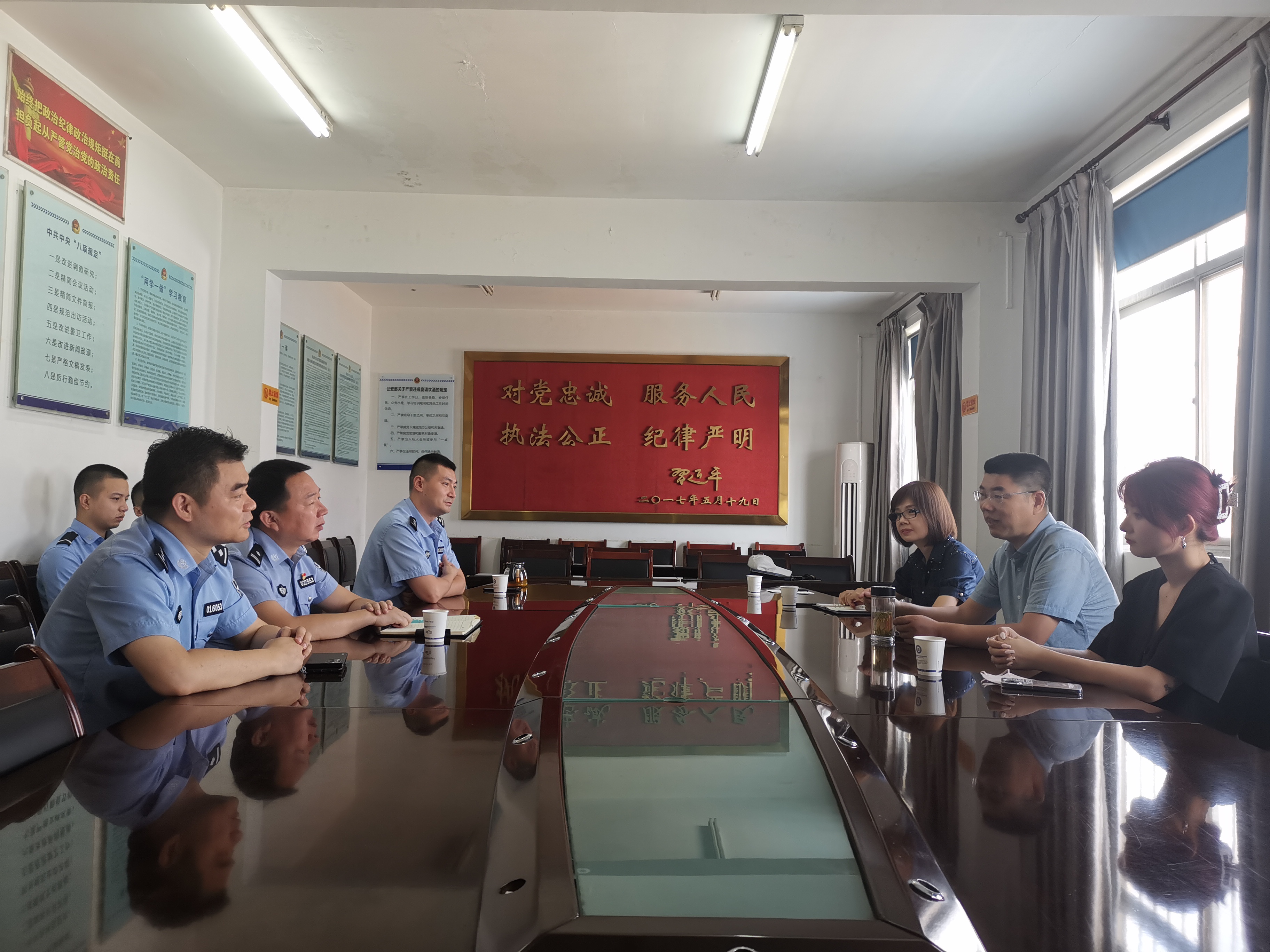 在曲江派出所,工作组和实习学生首先在王凯朋副所长的带领下,参观了这座按照现代警务模式科学规划,功能完备、配套齐全的基层多功能战斗实体。座谈中,王凯朋副所长和工作组对学生实习、生活情况进行了充分沟通。工作组感谢曲江派出所提供的优质实习环境,勉励学生向一线民警多学习多请教,圆满完成实习任务。