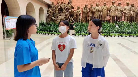 在延安革命纪念馆的展览出口,实践队成员张子涵、吴泽忱采访了高中生、大学生、中年游客以及纪念馆的讲解员,就革命纪念馆展览的一些问题和对延安精神的理解进行了提问,反映了各个年龄层、不同职业间对这些问题的不同理解,采访结果也让实践队全体成员对延安精神的普及有了更充分的实践依据。