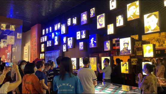 进入纪念馆展览区,实践队遇到了老党员团队参观展览,实践队成员同其一起合唱红色歌曲《东方红》,缅怀先烈,回忆那段革命岁月,深知今天的幸福来之不易,明确坚持党的领导是国家和青年人发展的根本遵循。