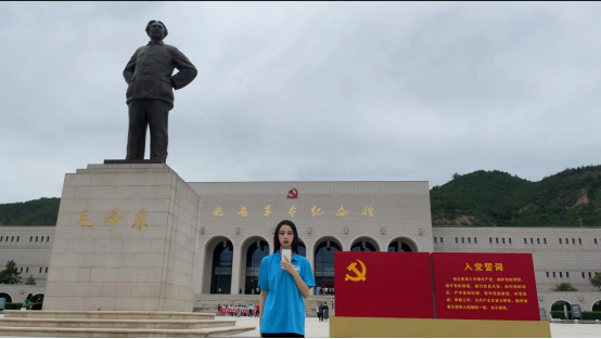 在纪念馆解放战争展览区,实践队成员王姬伊诺、朱炫、卢昱辰在这里录制“探寻革命圣地、传承红色精神”主题团课,以青年大学习的形式为大家身临其境地介绍革命事迹,宣传红色故事,展示青年风貌。